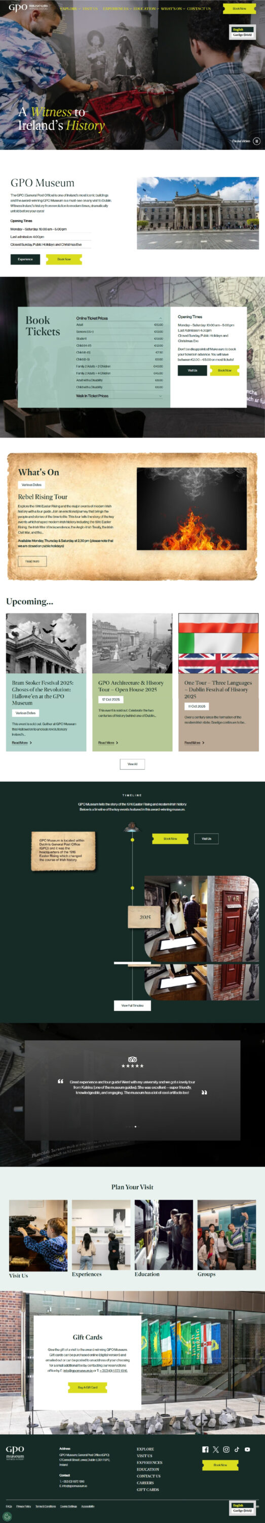 The museum reports a user-friendly experience that’s encouraging visitors to return. The client also enjoys a new experience which ensures a seamless experience across all devices. Optimisation for SEO is also a factor that they commend, as they envision increasing traffic to the site, making it a more valuable feature for visitors looking for unique experiences in Dublin.